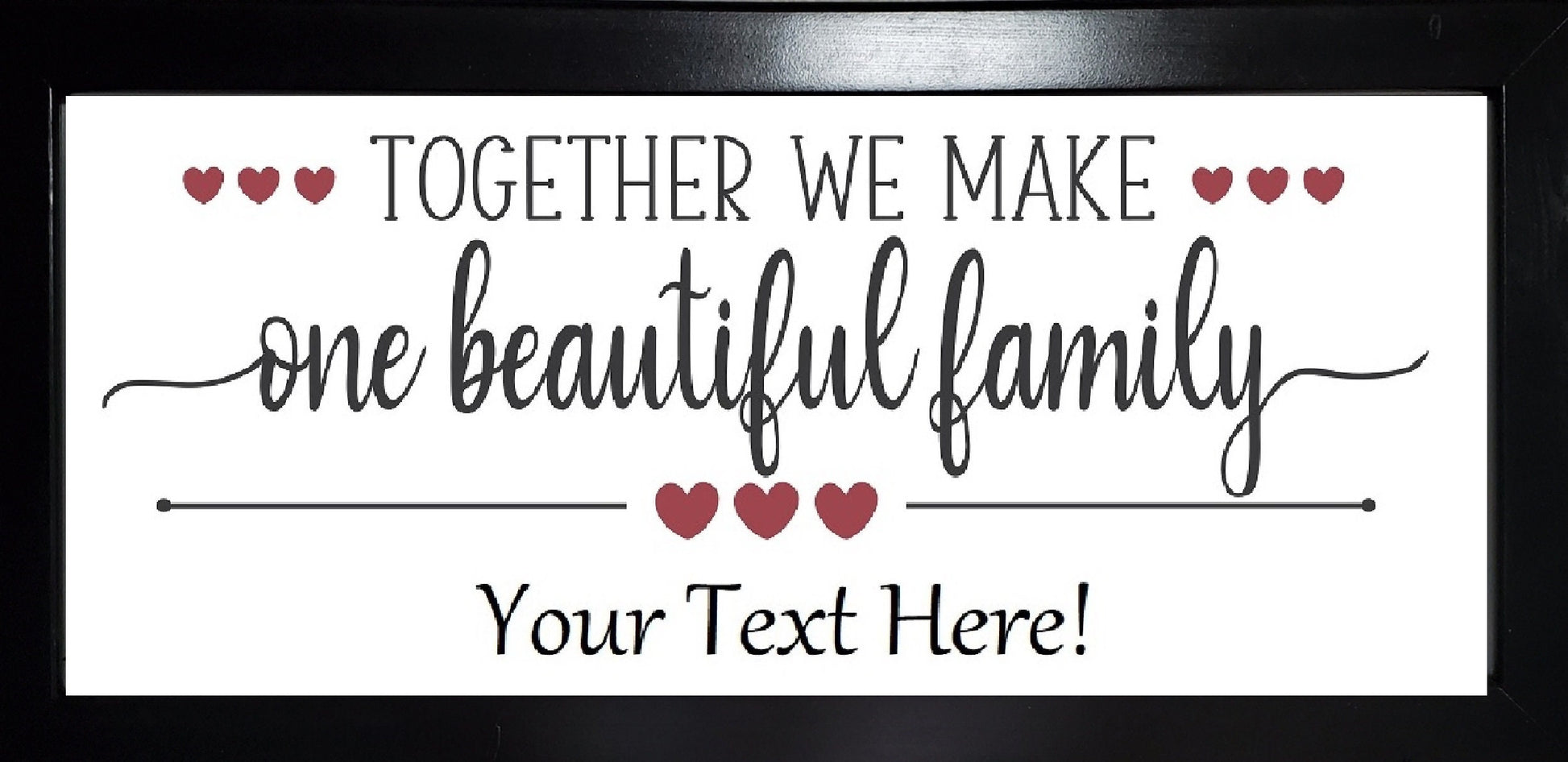 Fireplace Mantel Sign "Together We Make One Beautiful Family" Name Sign Personalized Engraved 26.5 x 13 Framed, New Family, Blended Family