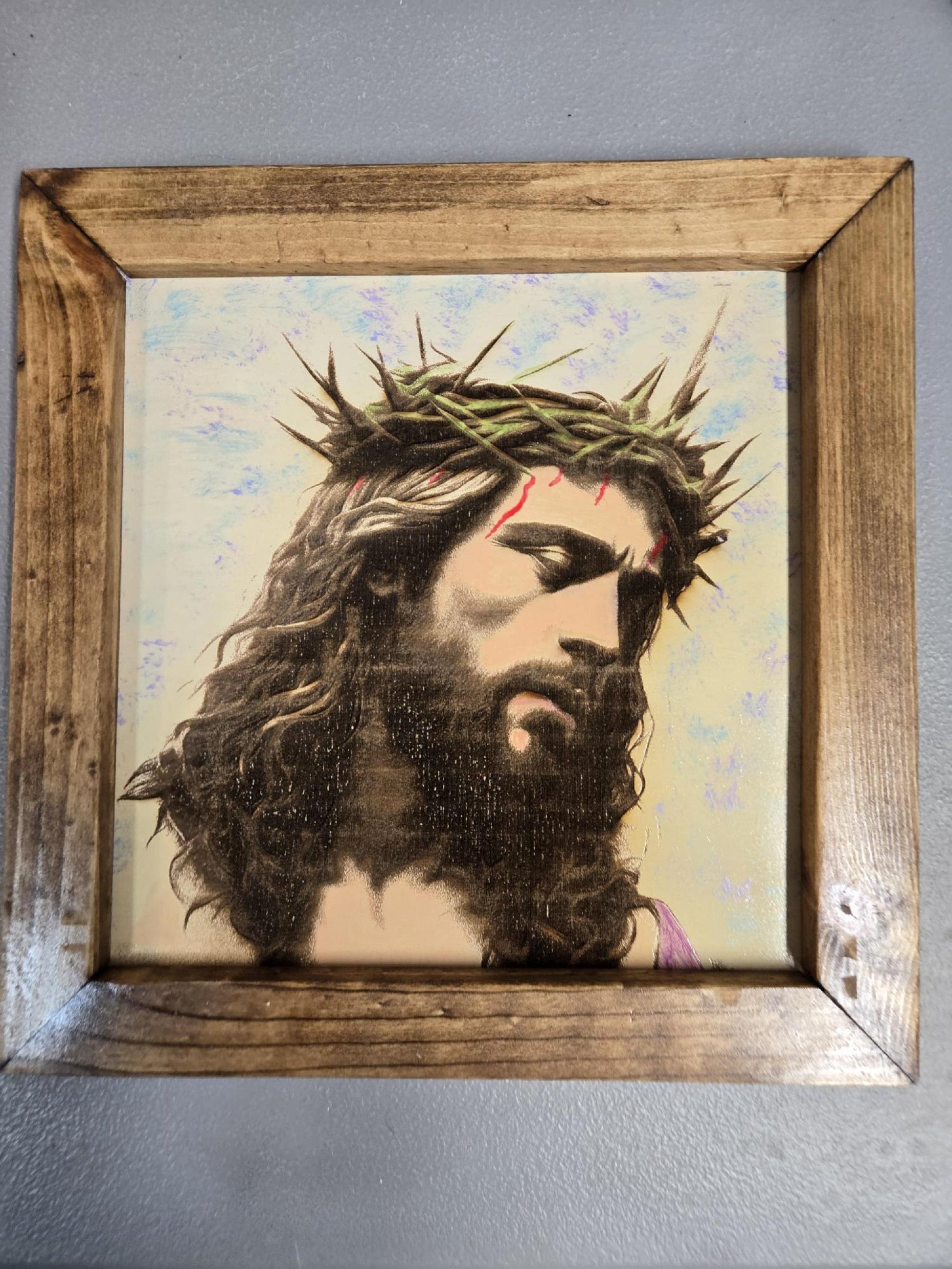 Jesus Christ Painting is a powerful reminder of the physical and spiritual burdens He bore. Jesus Crown Of Thorns Art is a laser engraved photo that is then hand painted.