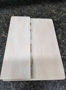 Can be stained, paint distressed or just painted. And sealed. This also has a folding stand on the back for easier travel or just slip it in a drawer. There are hinges on the back.