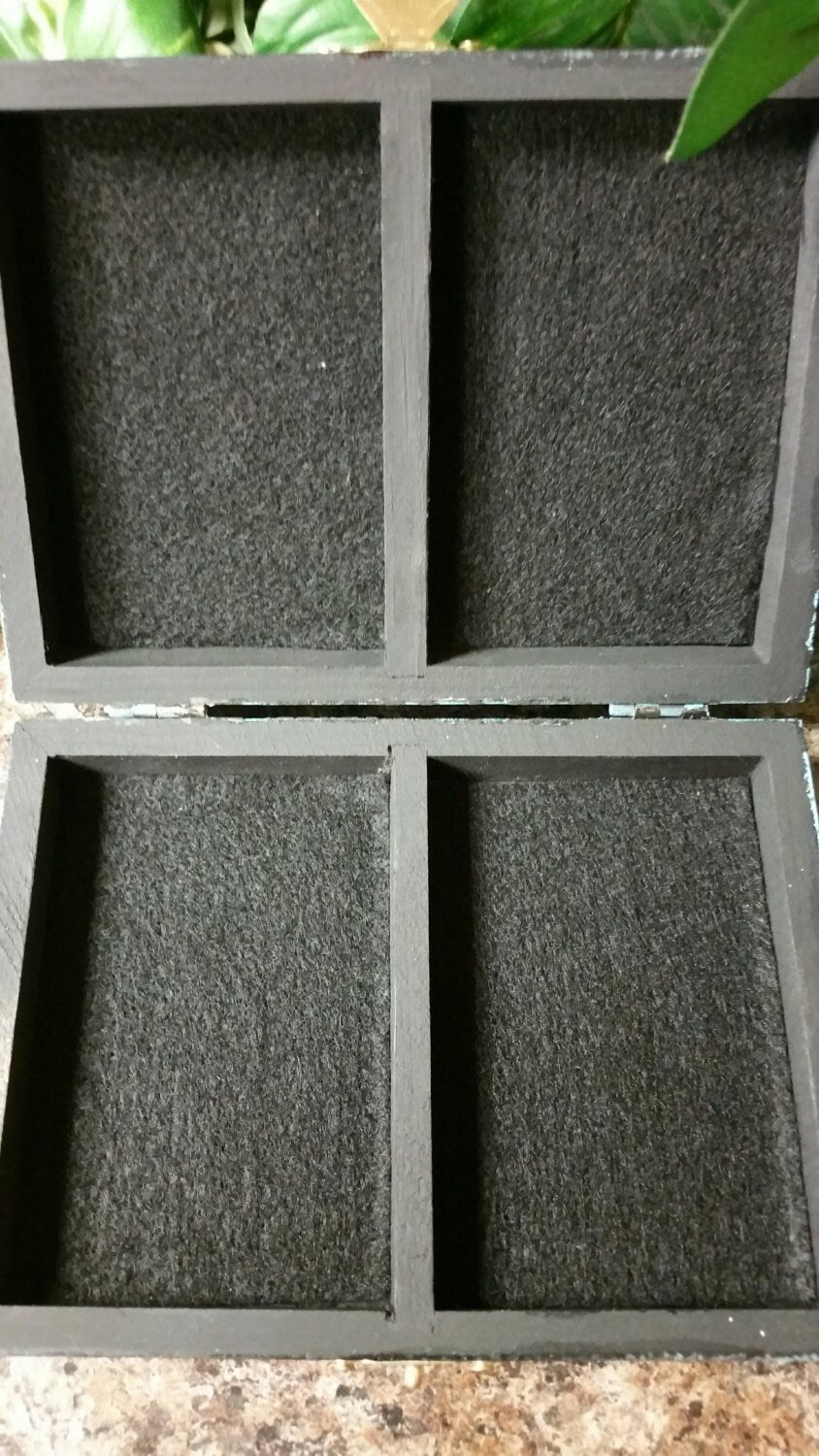 Box is handmade and painted with purple distressed paint. Box measures 5.9x4.3x1.2. I love this box as it holds 6 rollettes. This is so easy to grab and take with you when you travel etc. Box is lined inside with felt and also on the bottom.It can be used for many uses. Let you imagination be your guide!