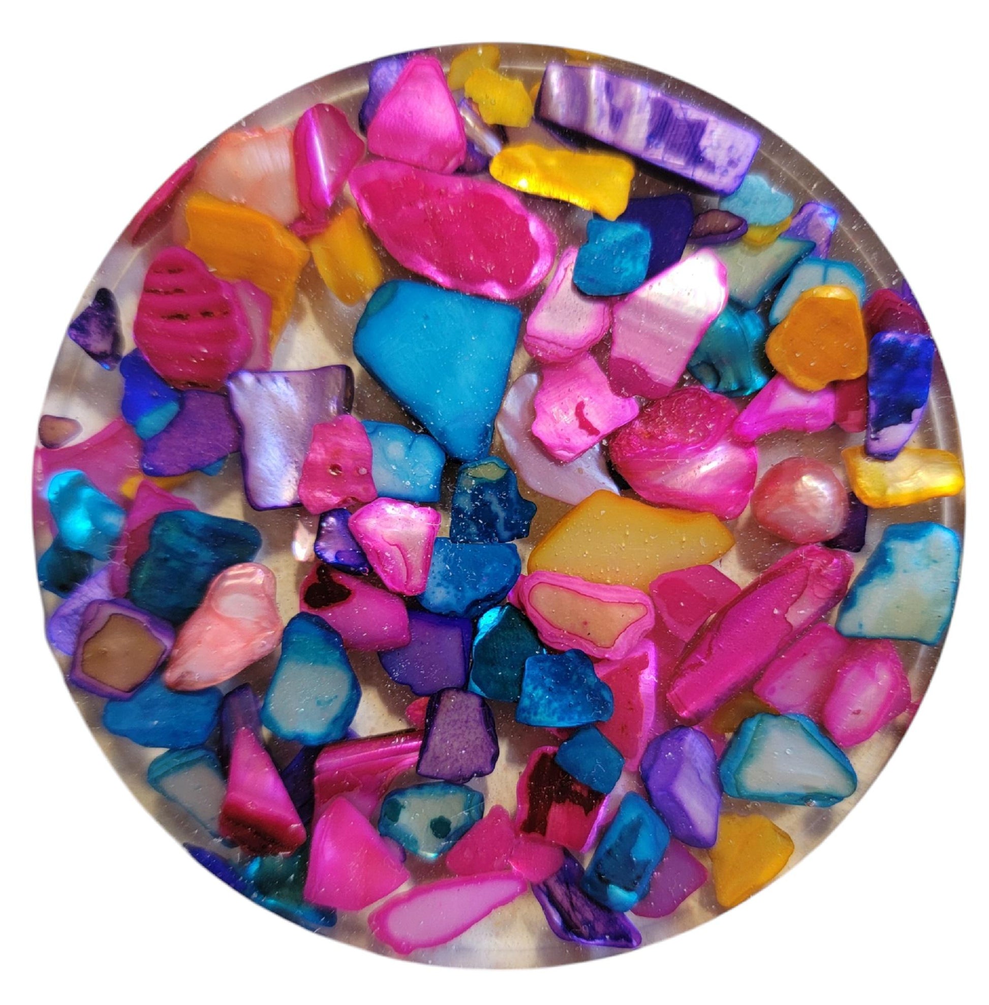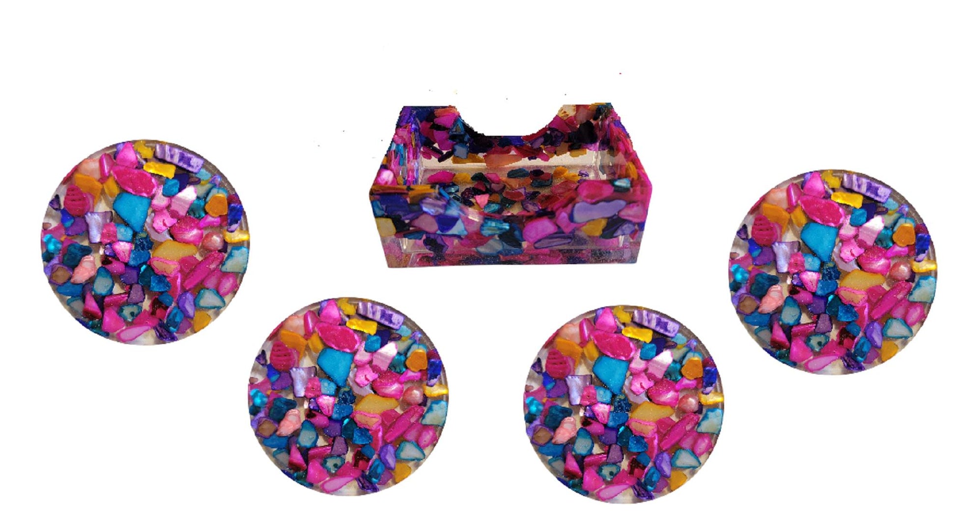 Set of 6 Coasters Multi Color Natural Seashell Chips and Resin Holder, Drink Coaster, Resin Coaster, Seashell, Wedding Birthday, Coaster Set
