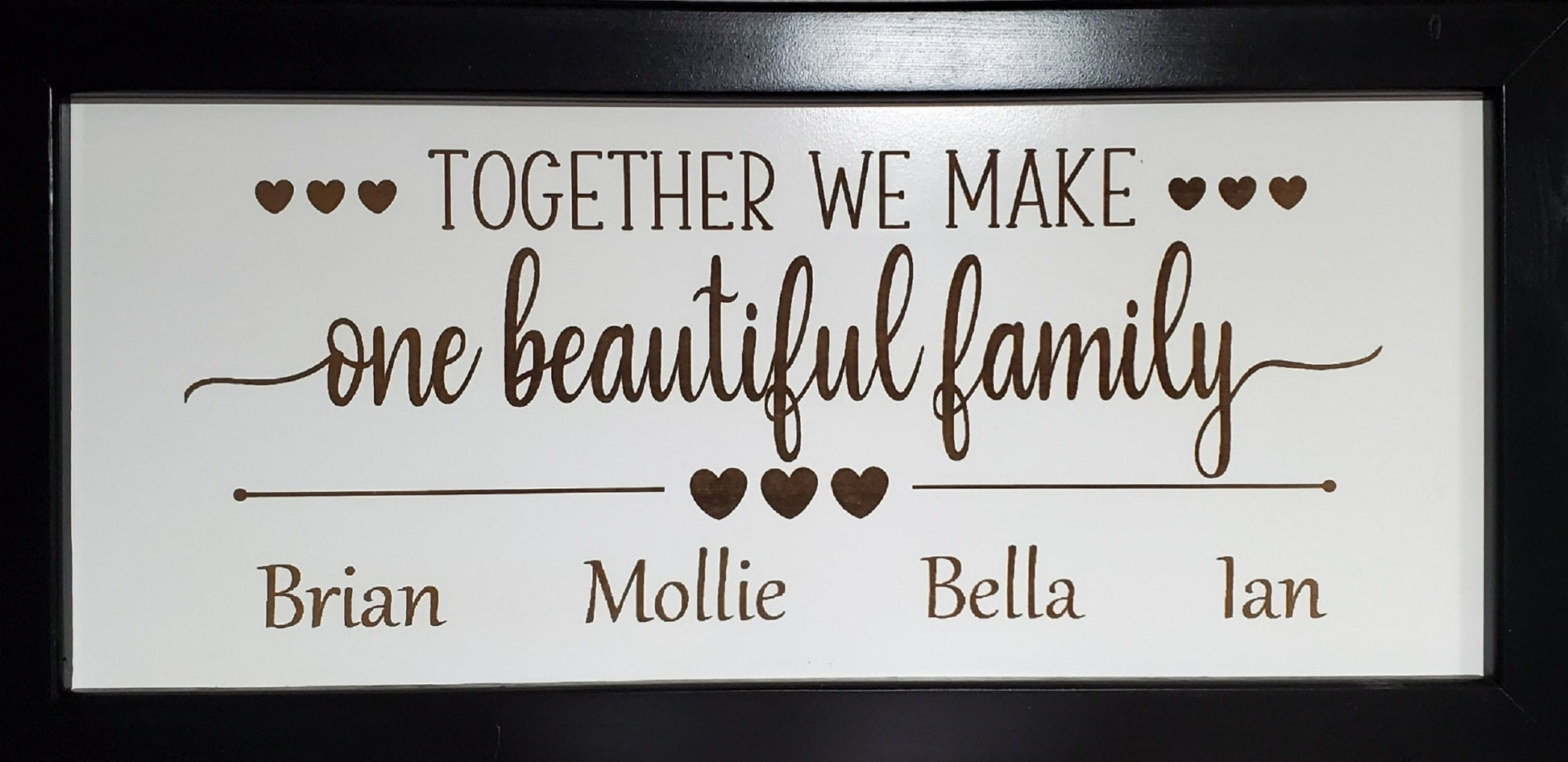 Together We Make One Beautiful Family Name Sign Personalized Engraved 26.5 x 13 Framed, New Family, Step Family, Blended Family, Newly Weds